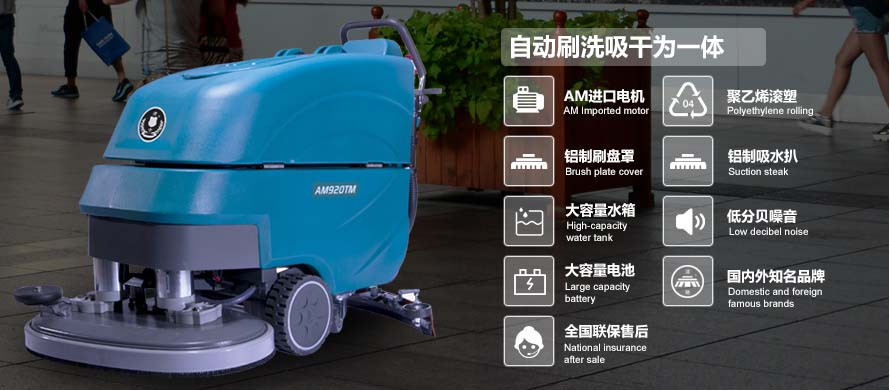 洁士AM880TM手推自走式洗地机产品性能特点:1. 独家三道安全防护设计:(1);第一道防线(独立接触器设计):刷盘电机、吸水电机、驱动电机采用三个分离式继电器设计,大大降低设备的故障率及后期替换成本,达到更好的独立保护目的;(2);第二*